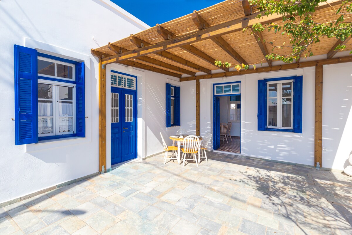 Our traditional cycladic house is a hundred years old and used to be a summer retreat for our family..It is located on the seafront in the picturesque fishing village of Mandrakia on the North coast of the island.Our home is sitting right on the water's edge. and therefor has a panoramic seaview .From our veranda you will enjoy breathtaking views of the Aegean Sea and have direct access to the water.You walk out the front door,go down a staircase into the sea for snorkeling or swimming.