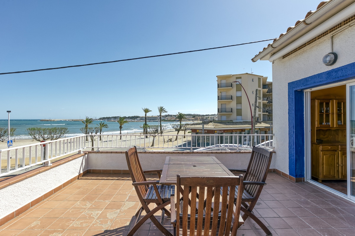 Enjoy a unique Mediterranean retreat on the waterfront, in the heart of L'Escala. This ground floor with private terrace allows you to have breakfast with views, relax with the sound of the waves and access the beach in seconds. Ideal for couples or quiet getaways, with all the comfort and charm of a cozy and bright apartment. Sun, sea and peace. We look forward to seeing you!