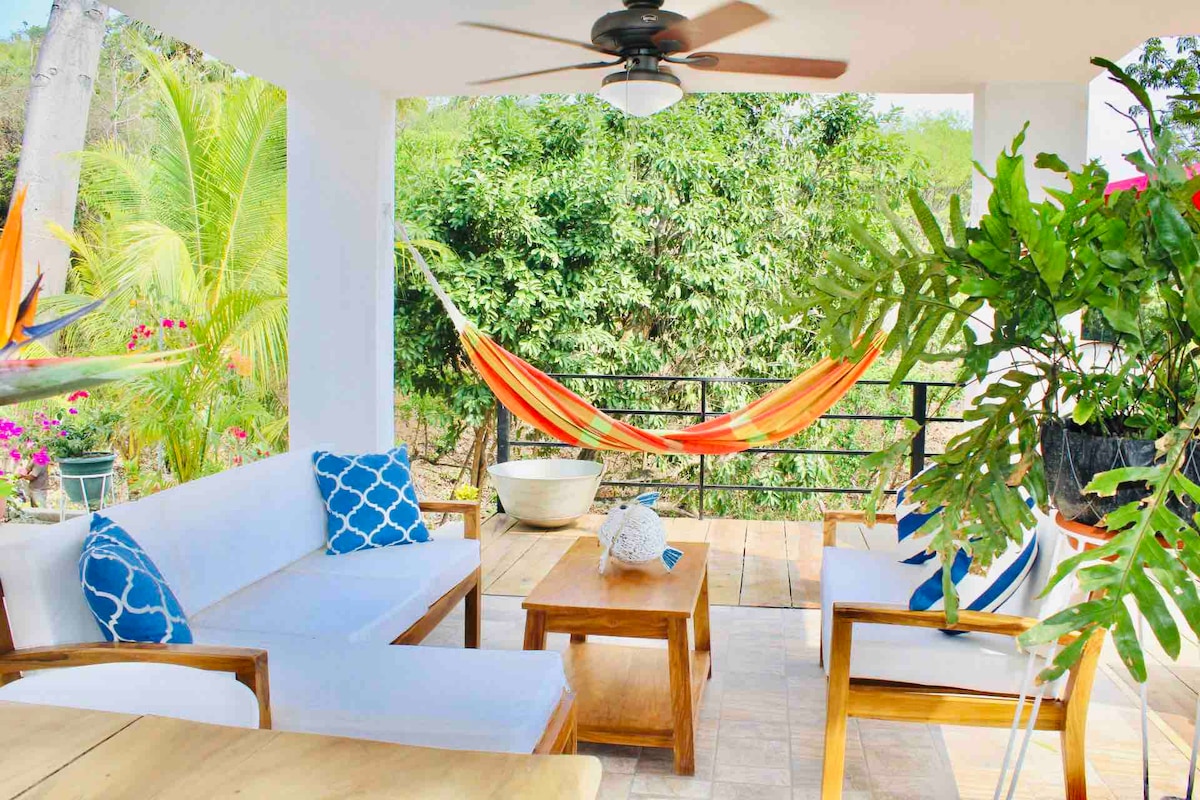 Experience our traditional, unique Salvadoran style Villa, nestled in a private neighborhood, w/walking distance to El Palmarcito’s beach & saltwater pools. Perfect for Nature Lovers, away from noise while being close to Surf City's main attractions. With a simple yet charming semi-open design, this coastal retreat blends indoor comfort with the soothing presence of nature. Ideal for couples, families, friends, surf trips, or remote work, it offers an authentic cultural escape and relaxed vibes!