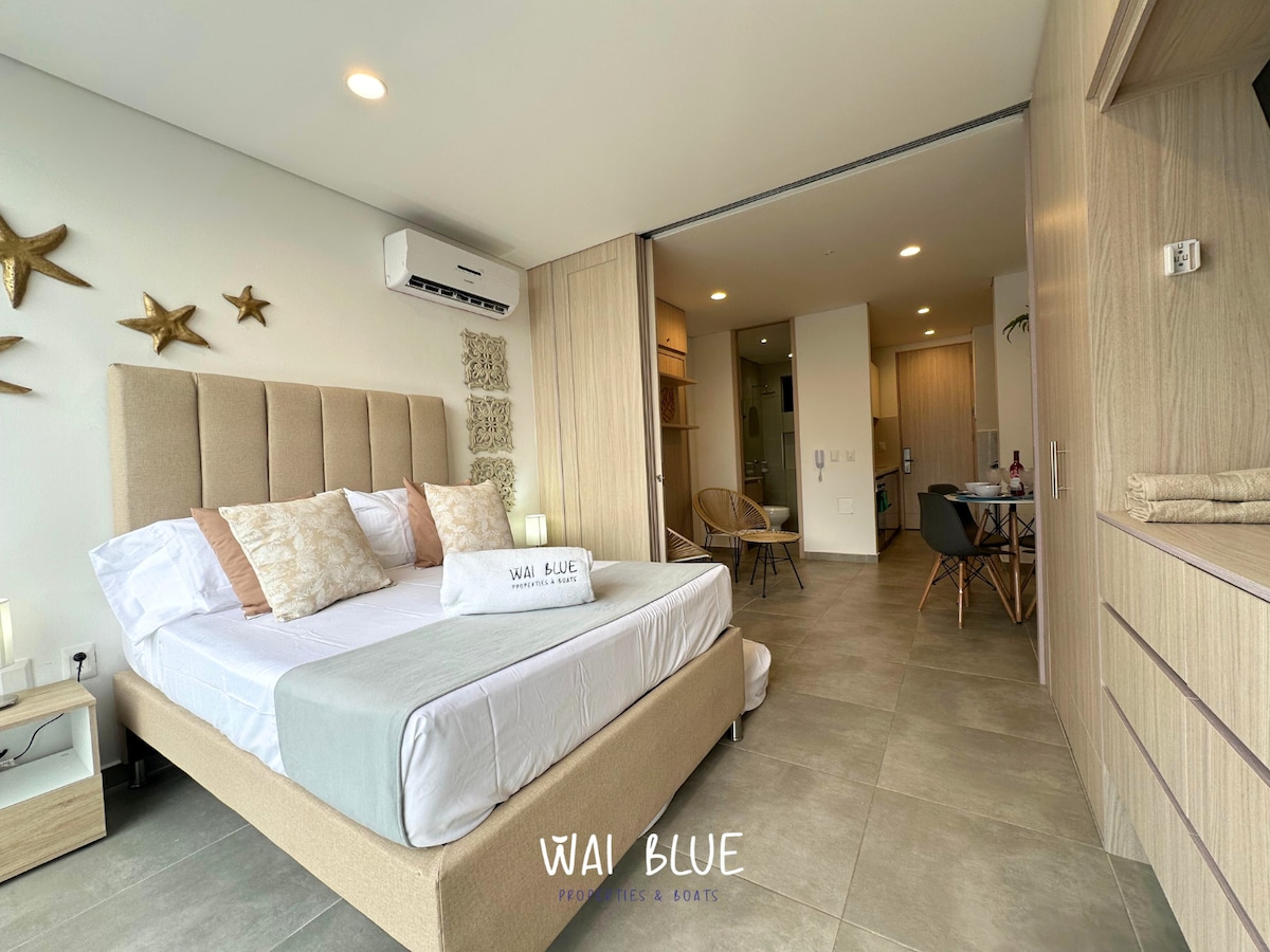 Your perfect getaway just 300m from the beach! Enjoy this modern studio, just a 5-minute drive from El Rodadero. It features: 🛏️ Bedroom with a Queen bed, Smart TV, A/C, and blackout curtains. 🛋️ Living room with a Murphy bed and sliding door for added privacy. 🍽️ Fully equipped kitchen. 🧺 On-site laundry. 🛒 Minimarket with essential products. There is an option for an adjoining studio with apartment 1306. Book now!
