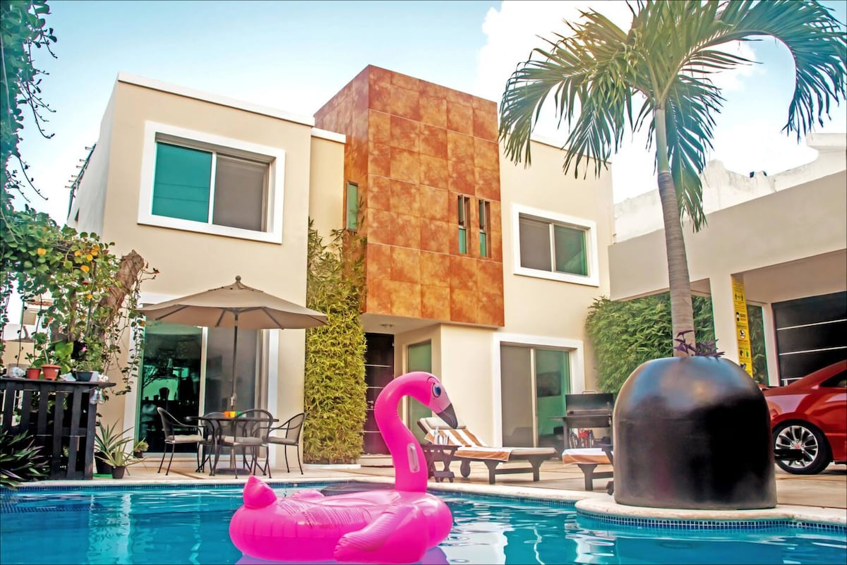 Welcome to Cancun with a private pool .The hot tub and pool are at room temperature, equipped with everything you need for your vacations . Rooms with bathroom and AA. Fully equipped kitchen. BBQ grill terrace, hammock, Wifi, grocery store on the corner of Circle K and Gomart. Very close to Walmart, restaurants , bars, shopping centers the Plaza Américas, Puerto Cancún ,beach area.Bus stop on the corner to destinations in Cancun and Riviera Maya, in car very close to the ferry to Isla Mujeres.