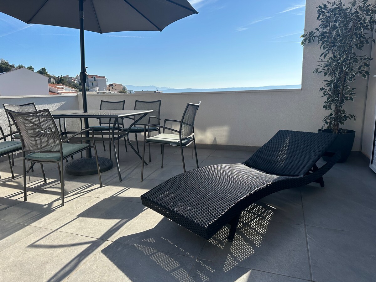 This modern accommodation is the perfect choice for those traveling in groups. Only 50 m from the apartment is the "Apfel Arena" with sports, cultural and health facilities. The apartment is luxuriously furnished whit jacuzzi for 5 and finland sauna .On the terrace there is a private pool, deckchairs for resting and a gas grill for a perfect dinner, with a view of the Biokovo mountain