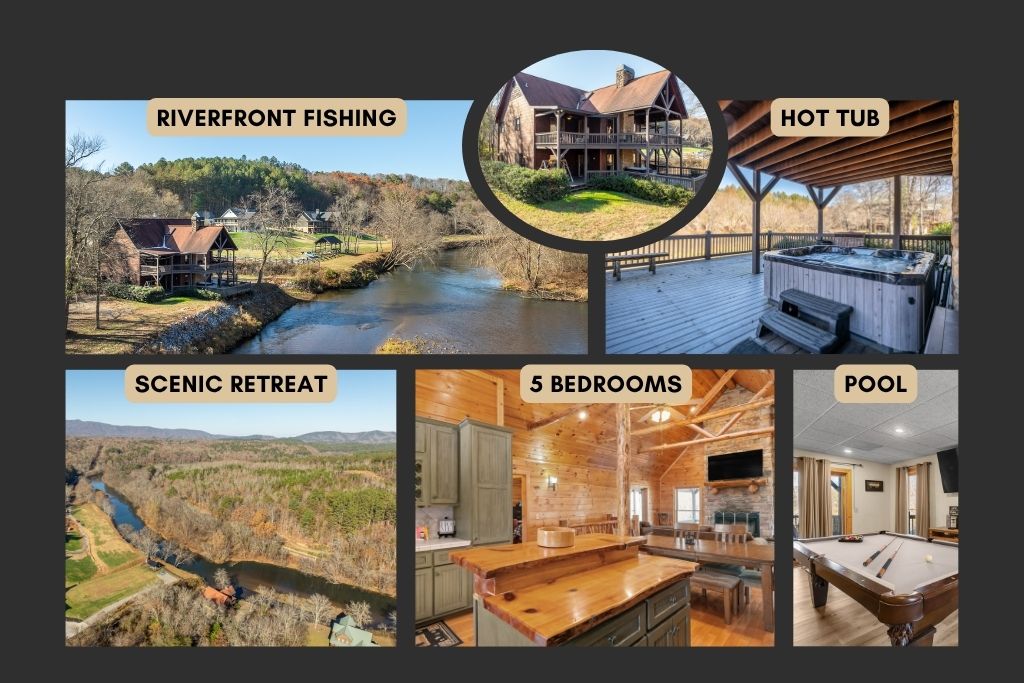 Riverfront Lodge, 5BR, Hot Tub, Pool Table & Views
