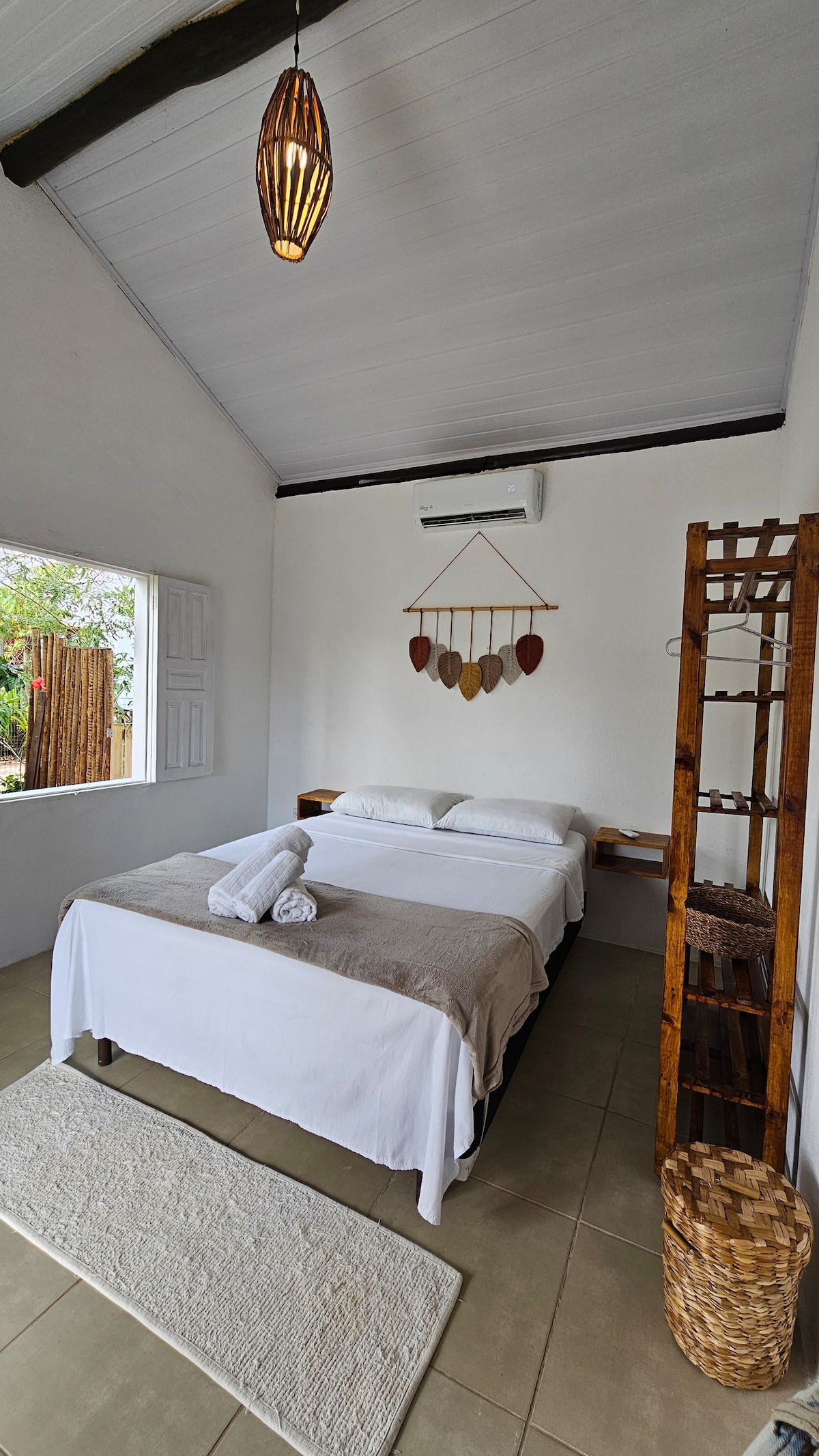 Newly built bungalows for up to 4 people with queen-size bed, two beds, bed and bath linens, full kitchen and utensils, air-conditioning, ceiling fan, Wi-Fi and 32" SmartTV. Inspired by fishermen's homes, our bungalows offer charm and simplicity combined with comfort and a unique experience, where you will live unforgettable moments. Located on the cliff of Corumbau, 300 meters from the beach, we are also close to the city center, with its restaurants and markets.