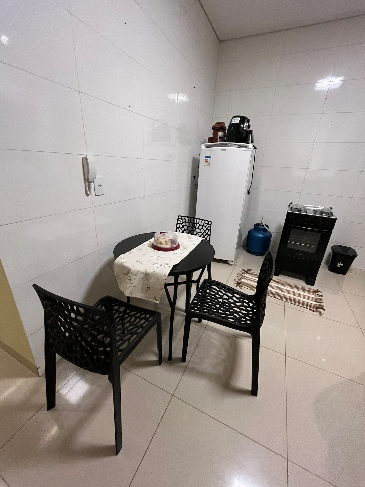 Cozy space with everything you need to relax or work. Designed for 4 people, it has a bedroom with a double bed with air conditioning, plus a sofa bed in the living room that accommodates 2 people, complete trousseau, a large living room, dining table, a full kitchen, barbecue, garage for a vehicle, washing machine. Close to Pharmacy, Supermarket, Bakery, Restaurant, Hospital, Convention Center, Vegetable Garden. Relax with the whole family in this quiet accommodation.