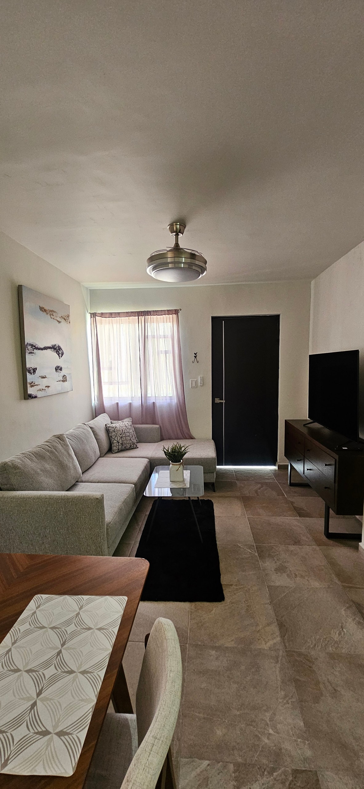 Enjoy the simplicity of this peaceful, complete, and centrally-located place on the 2nd floor. Located 15 minutes from downtown Apodaca, 20 meters from downtown San Nicolas, 20 meters from Escobedo, 30 meters from the international airport, and 20 meters from the northern airport. It has 1 Orthopedic double bed, 1 Queen memory foam, sofa bed, dining room, full kitchen, work desk, 50" TV with streaming apps such as Prime, Disney, Star+, HBO max etc. Alexa speaker A laundry room 5 minutes away Parking space in front of the apartment