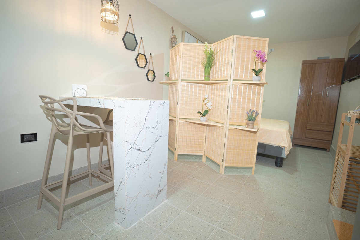 Enjoy a modern and cozy accommodation, just a 2-minute walk from the beach. Ideal for relaxing with family or friends. 📍 Near: Shopping de Playas (15 minutes) Delfín Beach (10 min) Varadero and Posorja (7 min) Puerto El Morro (26 minutes) Includes 1 bedroom, full bathroom, A/C, TV, WiFi, parking and 24/7 security. Tranquility and comfort by the sea!