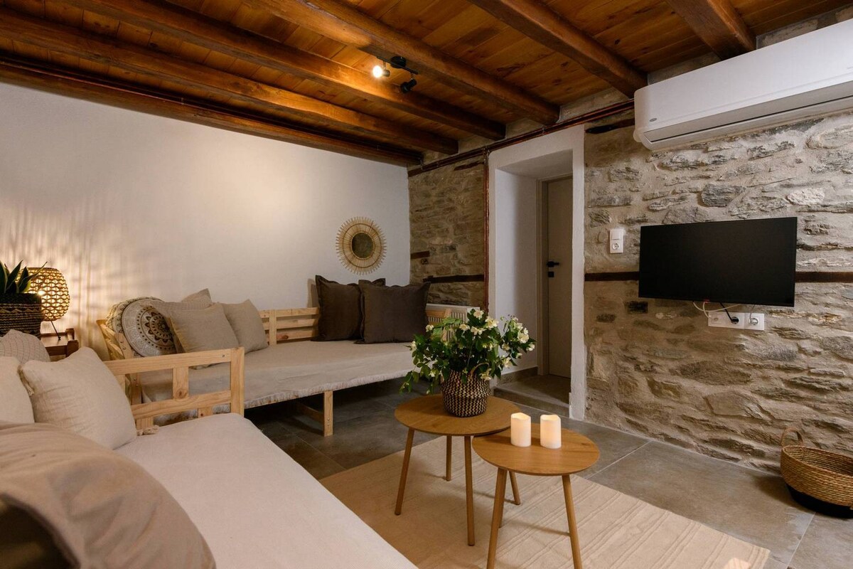 Keep it simple at this peaceful and centrally-located place. Your family will be close to everything when you stay at this centrally-located place. You will find close to our house supermarket, bakery, farmacy, restaurants and bars all reachable by walking.The beach is less than 80m far, very nice and clean, organized with sunbeds. The house it’s renovated in 2024 and everything it’s brand new.We have yard with natural shadow.The village is 4 km far from Prínos Port