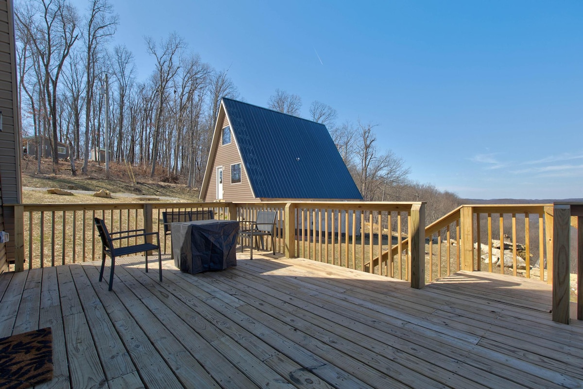 Welcome to Skyview Cabin! A unique all wood construction suspended over a cliffside. What sets our cabin apart is its unique perch – suspended 30 feet up in the air, offering a truly elevated experience. The property is peacefully secluded, yet just a short 20 minute drive to Red River Gorge. Enjoy a nice soak in the hot tub after taking part in all the RRG has to offer : swimming, kayaking, boating, biking, fishing, golfing, hiking, caving, and rock climbing.