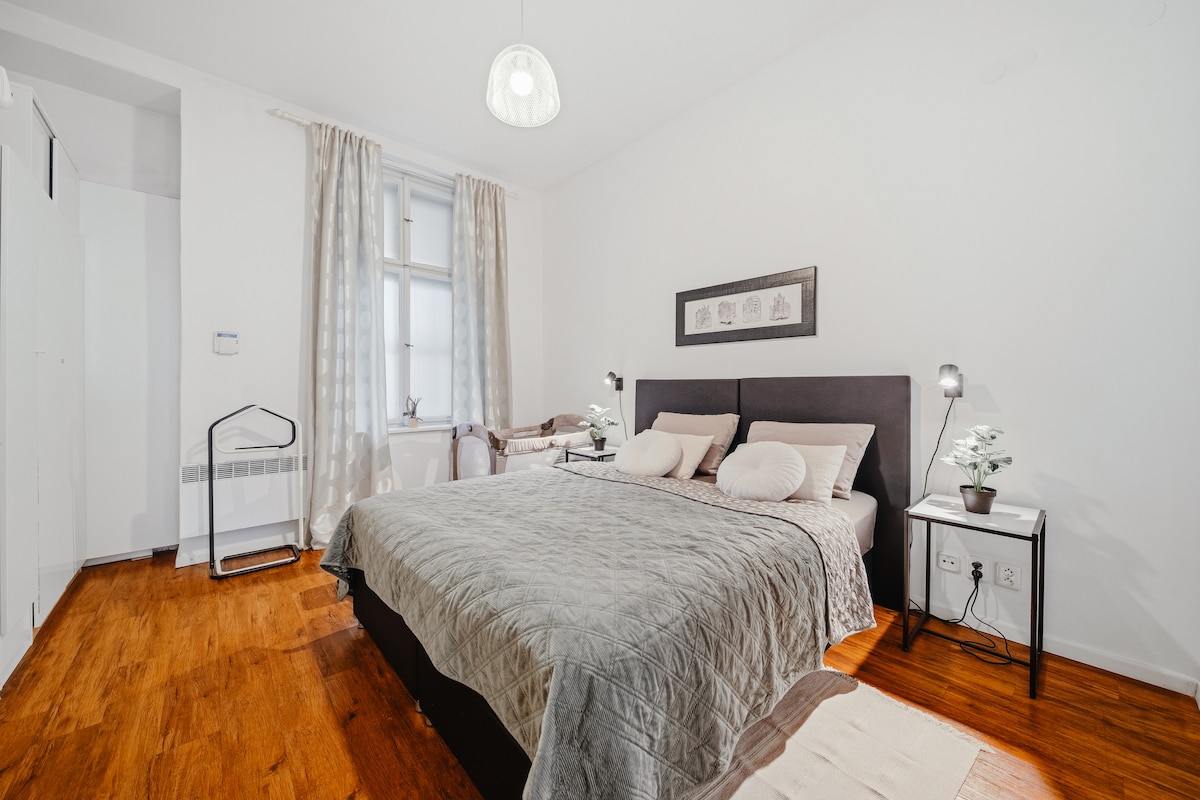Experience the brand new stylish fully furnished apartments designed by renowned architectural studio Nedvěd Architekti where you can find everything from comfortable beds to towels and coffee cups. The carefully renovated building has preserved the best of history and added everything that modern housing requires. Make yourself comfortable! • 5 minutes to the heart of Prague • 80 meters to the nearest café • 1 stop from the main railway station • Steps away from metro and tram
