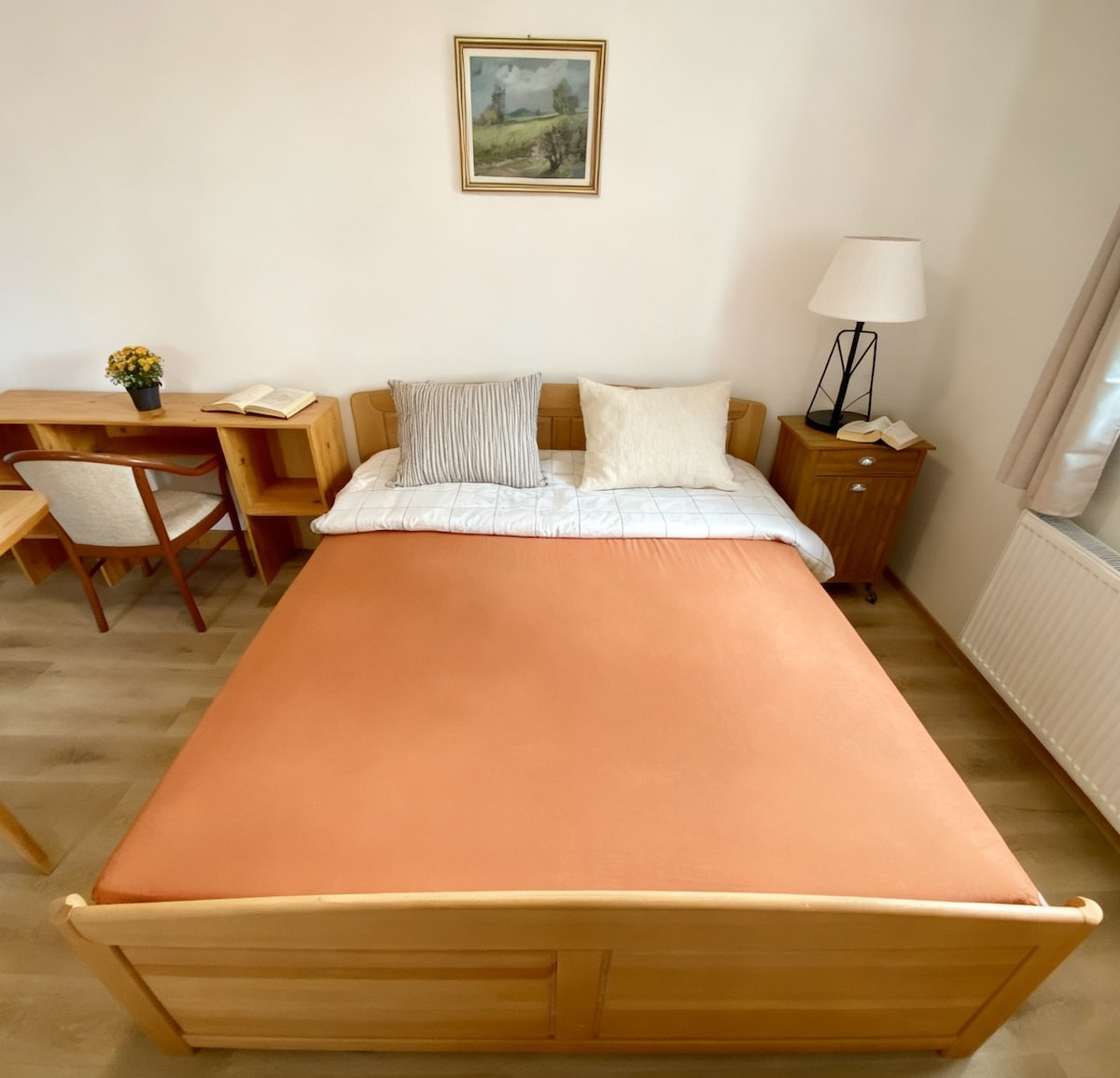 Sunny bedroom with own spacious terrace in a house, standing in a very quiet and green location, only 10 minutes by bus to the city center, or 20 minutes by foot. Workplace in the room. Stable WIFI connection for free. Shared living room, fully equipped kitchen & bathroom (shower and bath).