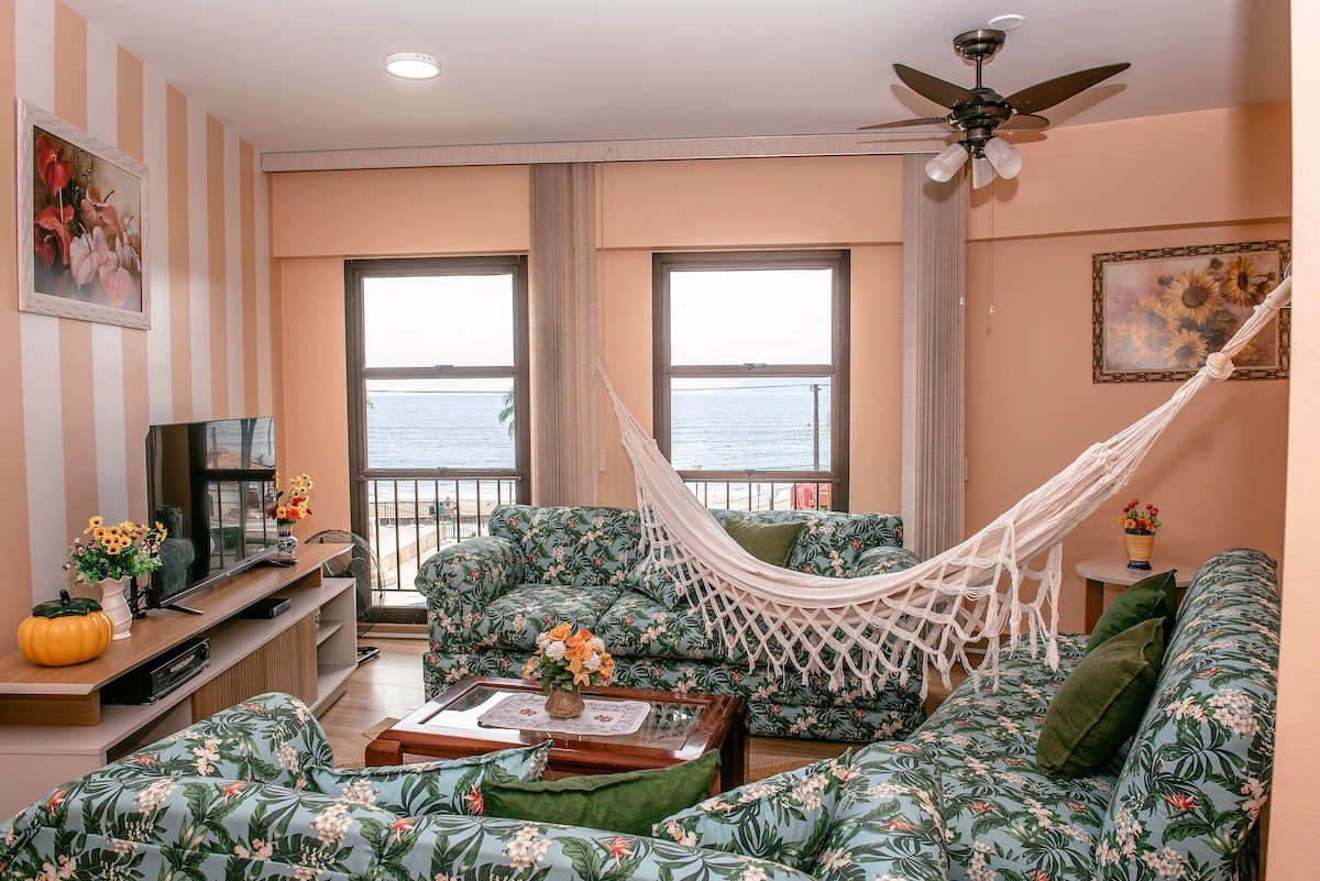 Cozy and newly renovated apartment in front of Martim de Sá beach, with air-conditioning in the living room and in both bedrooms, and a 42-inch TV with Netflix released for you to watch. Our apartment does not have a view of the beach, but as soon as you leave the building, just cross the street and you will already be on the beach without the need to be driving around in traffic. We have a preference for renting to couples and families. We do not rent to groups.