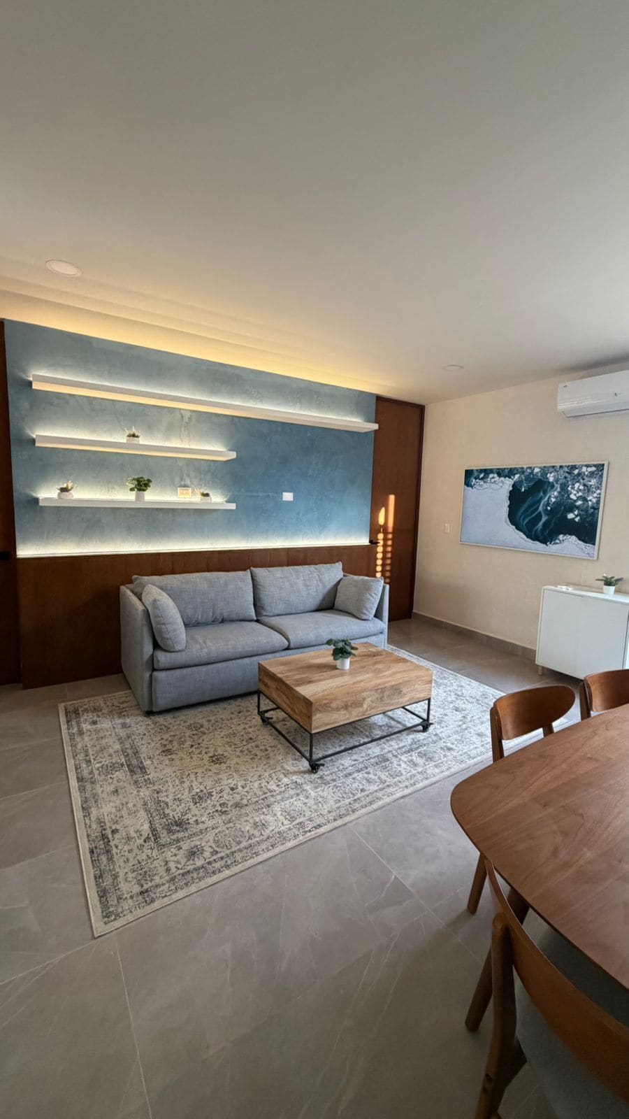 Brand new apartment. It is located on the 3rd floor, has a living room, dining room, kitchen, refrigerator, electric stove, microwave oven, cooking utensils, plates, glasses, Smart TV, excellent WiFi signal, bathrooms, terrace, with private parking with electric gate, reception at the main entrance with 24/7 surveillance and reception. Pool with Sport Bar and lounge chairs.