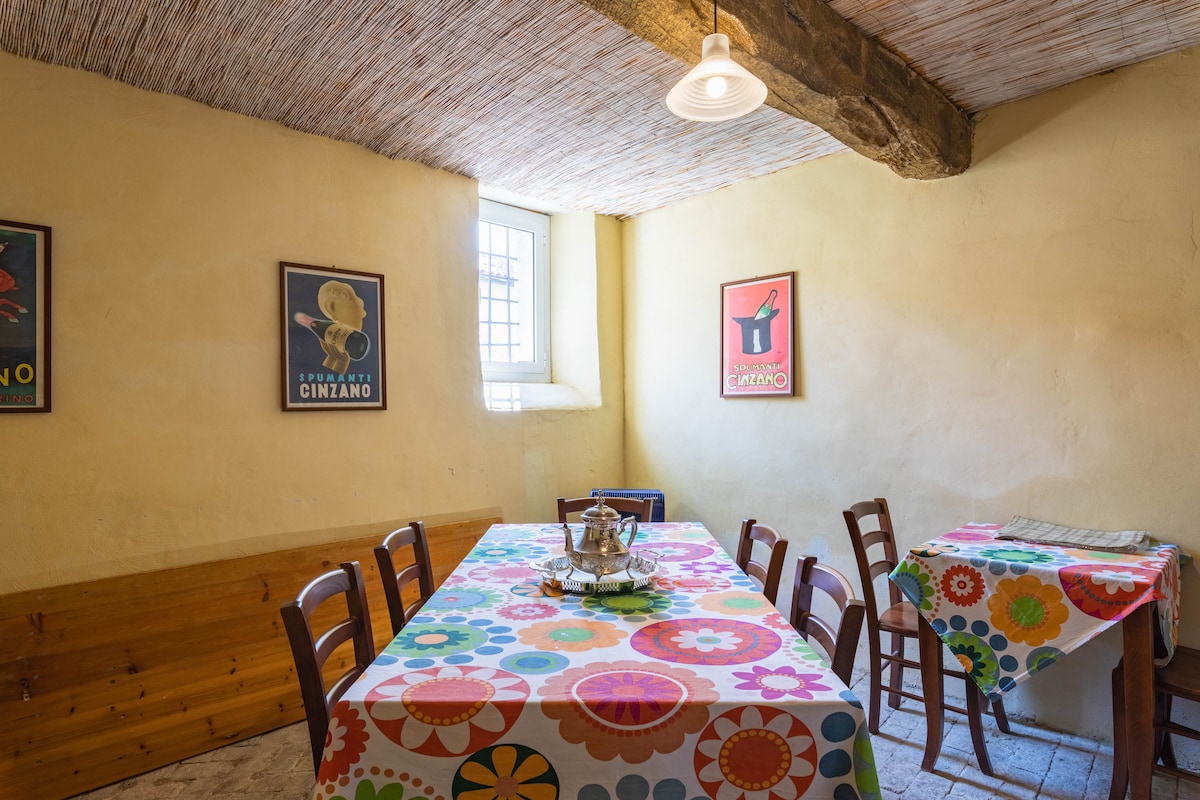 A simple and romantic space, a real room without frills with a kitchenette and a small terrace overlooking the river: from here you can see a small stone bridge... and the sound of flowing water. The accommodation is a single large vault: the whole house has been restored using natural materials, lime and paints made with flour and linseed oil. For the winter months, there is a wood stove that guests can manage independently. Wood is provided for the stay.