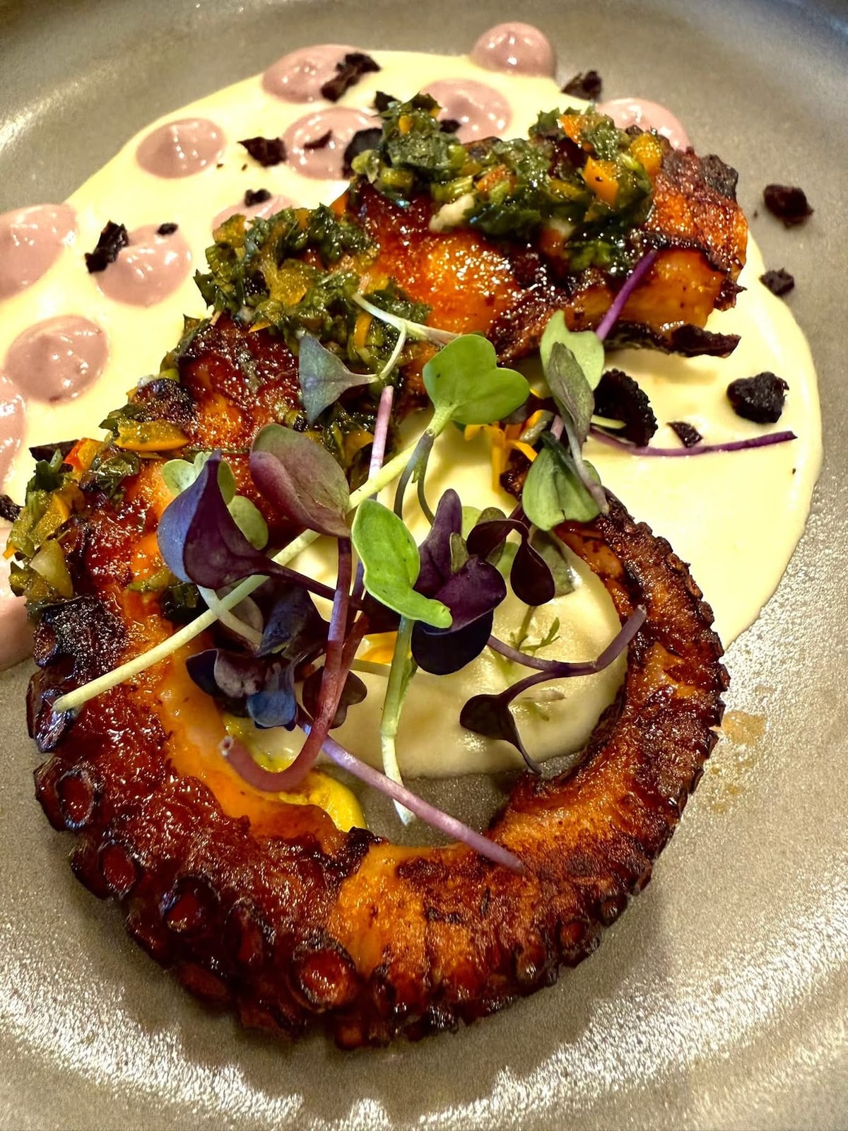 Seasonal cuisine, fine dining, creativity, rustic touches, presentation.