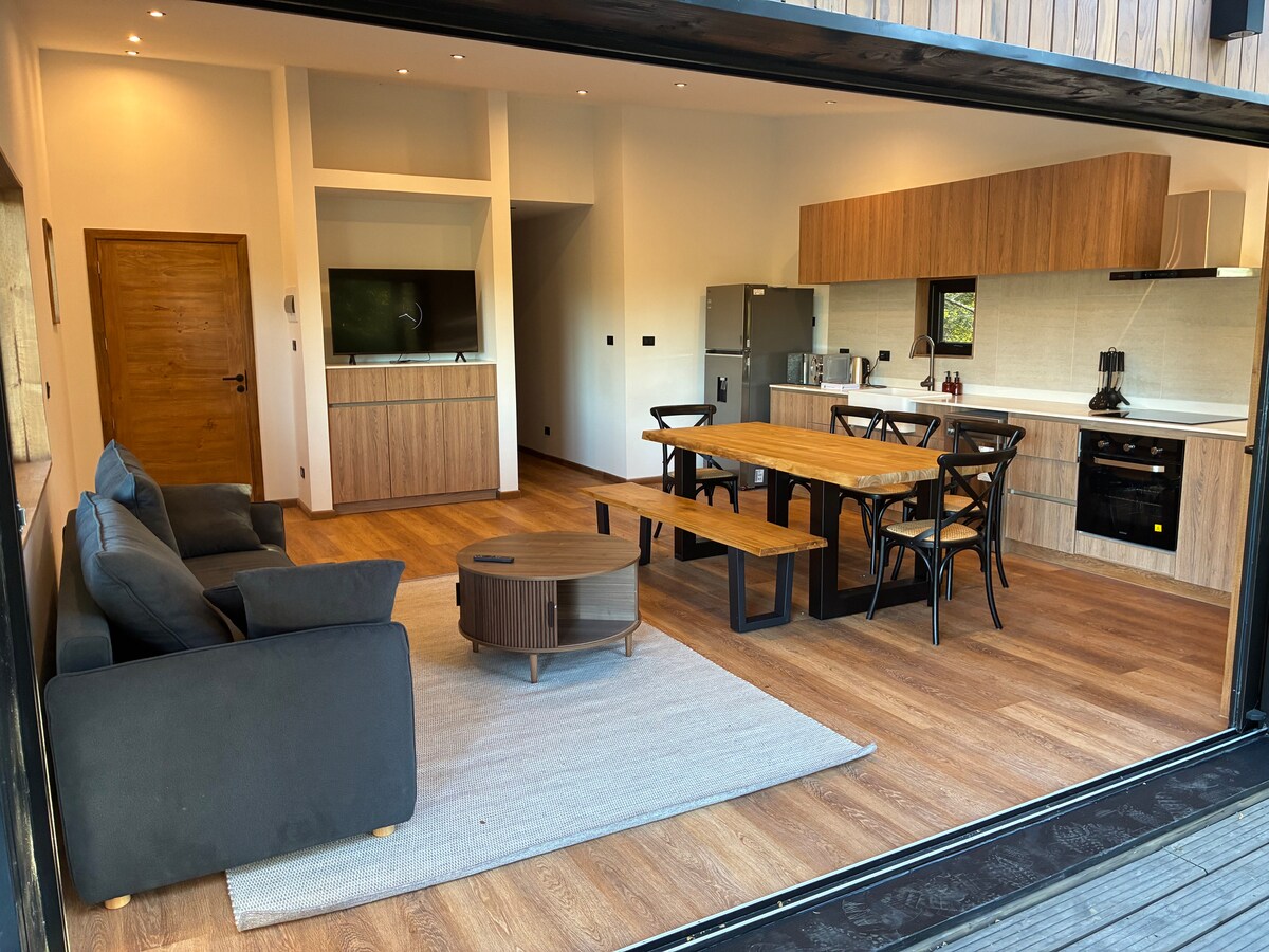 A 65 sq. meter house built and decorated with details that will make your stay a pleasure from the moment you enter the grounds. It is located on a plot with 2 houses and 2 friendly and quiet dogs. This special 65 sq. meter Puerto Varas house was designed with a large common space that integrates the kitchen, living room, and terrace designed especially to enjoy family gatherings and connect with the environment. Located 5-10 minutes by car from downtown Puerto Varas and the lake.