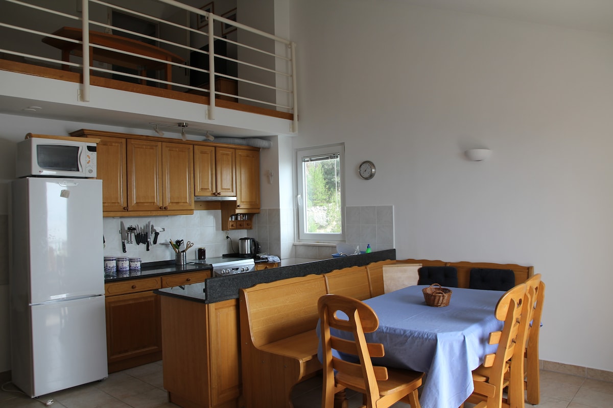 Brand New Loft Apartment which consists of big kitchen with dining zone,two bedroom,two bathroom,laundry room and balcony where you can enjoy in beautiful view of the sea and Pakleni Islands.We have available free parking space in a front of the house.The house is situated in a quiet zone ,but very close to all amenities.Center is just 10 minutes from the house and 5 minutes to the first beach,supermarkets and restaurants.