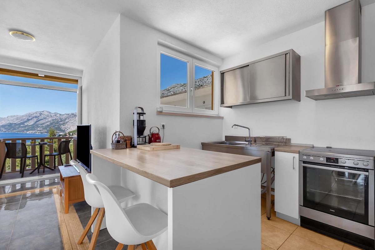 Apartman je renoviran 2024. godine. Obiteljska tradicija iznajmljivanja apartmana traje od 1980. godine. Apartman je okrenut prema moru, gdje možete uživati na balkonu s prekrasnim pogledom na more i otoke. Nalazi se u samom centru Brela, svega 4-5 minuta od centra, plaže i svih aktivnosti. Restorani, supermarket, pekara, kafići, ljekarna, crkva i plaža mogu se obići pješice, a parking vam je besplatan. Domaćin će vas dočekati i dati vam sve preporuke. Apartman idealan za parove i solo putnike.