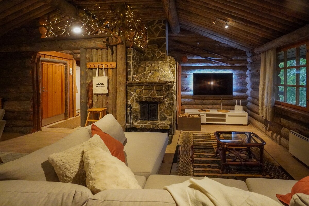 Lapland Lodge Pyhä is an authentic silver log cabin in the middle of Pyhä Center. The slopes, restaurants, grocery store and ski tracks are within 50-250 m and the national parks and wilderness within 400 m. Stunning, private views towards a small forest! The house has 2 bedrooms of which one is an open bedroom upstairs, a fireplace and a newly renovated private sauna. Free high speed wifi. The area is safe also for small children with no big roads nearby.