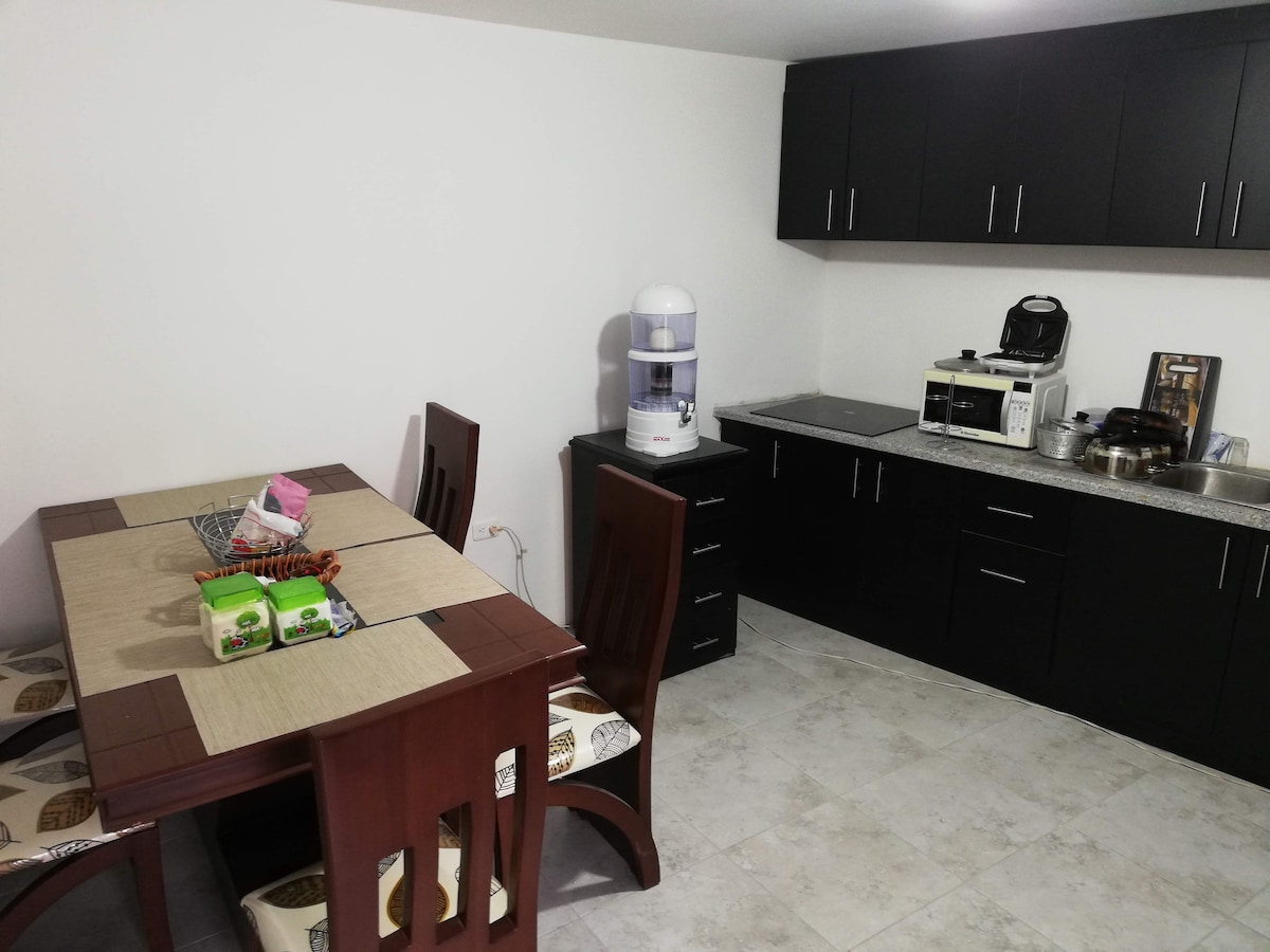 Newly built building. Three spacious bedrooms, each with a bathroom and walk-in closet. Fully equipped, it has a kitchen, refrigerator, and microwave for business or leisure trips. The property has parking, an elevator, and is completely private. The owners live on the lower floor. It is located between Ruta Viva and Avenida Interoceánica, very close to San Francisco University, in Escala shopping center, 20 minutes from Mariscal Sucre airport