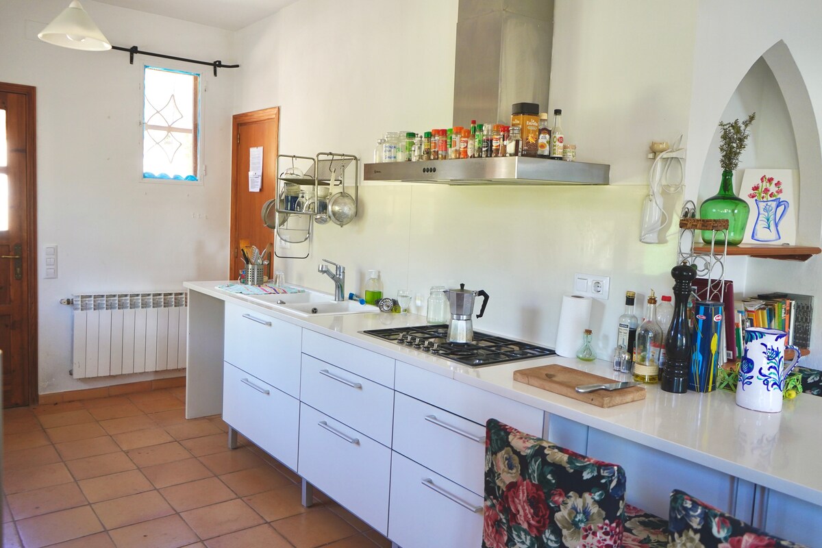 Enjoy the sounds of nature when you stay in this unique place. the purity of the air, the transparency of the water, the beauty of the night, the smell of the earth, the color, the light, the silence... Located in "El Parrizal", El Mas de LLuvia has multiple indoor and outdoor spaces. The 3 bedrooms each have a double bed and full bathroom. The living room and kitchen are fully equipped. The porch has a barbecue.