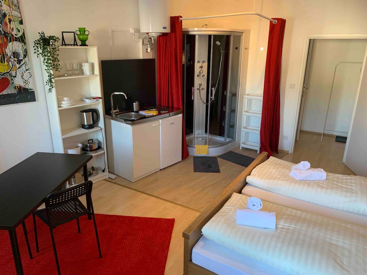 Small but cozy appartement (190sqft) with seperate entrance, 1 room, small cooking area, fridge, bathroom and small terrace. If you travel by car, please tell us in advance. Good bus connection to old city. Tourism tax of € 3,55 to be paid in cash at location.