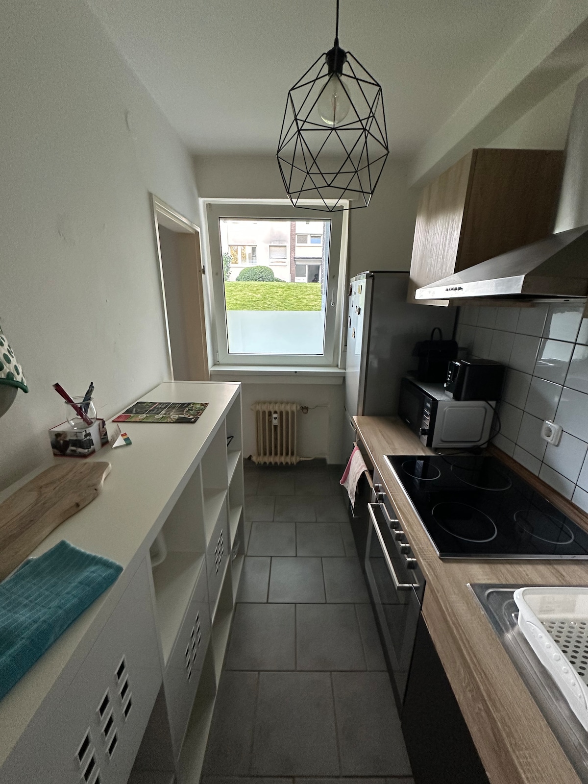 Unsere mit viel Herz und Handarbeit eingerichtete Wohnung ist tage- und Wochenweise zu mieten. Im Sinne der Nachhaltigkeit haben wir vielen Möbeln ein zweites Leben geschenkt. Die Wohnung liegt im 1. OG unseres Einfamilienhauses in einer ruhigen Sackgasse. Natur- und zentrumnah gleichzeitig (je 5-10 min zu Fuß). Perfekte Lage zur Messe Düsseldorf/Essen. Voll ausgestattete Küche, Arbeits-/Lese-/Fitnessbereich, Schlafzimmer, Wohnzimmer mit Smart TV. Im Vorgarten kann eine Bank genutzt werden.