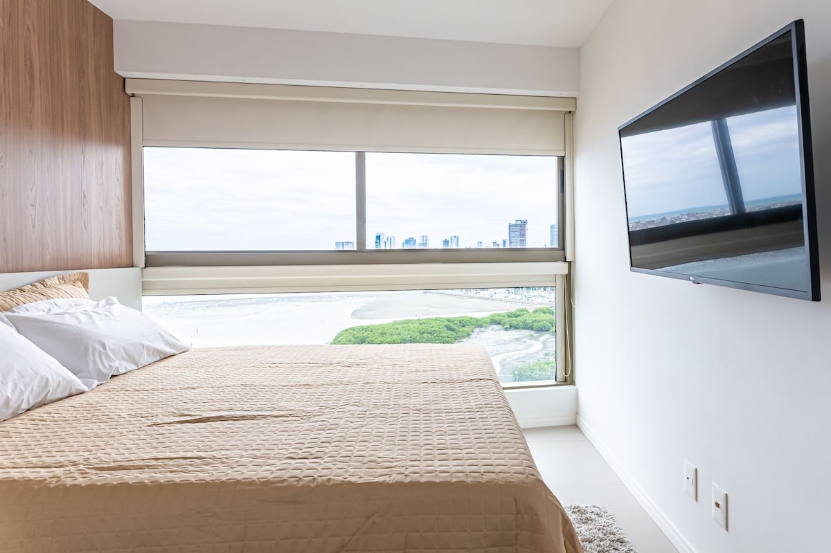 The space was designed with details in mind for a good stay. You'll find all the items you need for your comfort, from a microwave, refrigerator, Smartv with cable TV and Netflix. The apartment is very central, a few meters from Shopping RioMar, next to the American Consulate Visa Center (CASV). What is most enchanting is the view you will have during your stay.