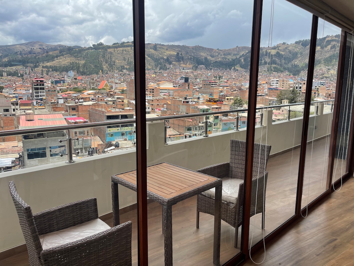 Our apartment is located just a few minutes walk from the Plaza de Armas of Huaraz, in the heart of the city, giving you easy access to the main attractions, restaurants and local stores. The ideal location to enjoy city life and explore Huaraz! Features - Panoramic terrace. - Private garage - Free laundry