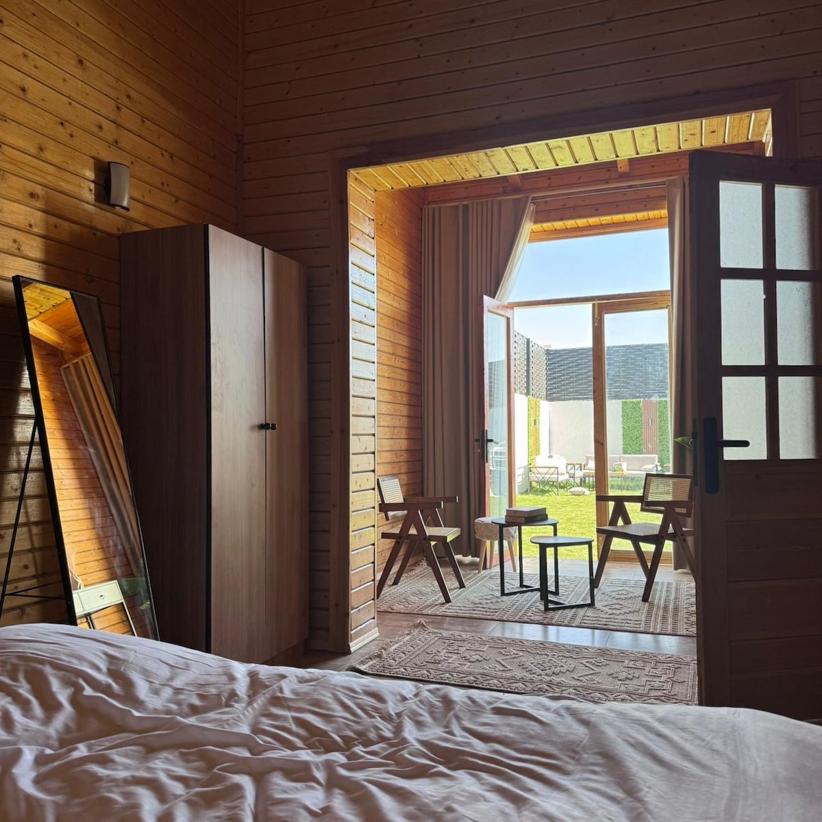 Enjoy a luxurious stay in a countryside cabin surrounded by nature. The cabin includes two private pools (indoor & outdoor), a cozy outdoor seating area among the trees, and a BBQ setup. With elegant wooden design, it’s the perfect escape for peace, comfort, and privacy.