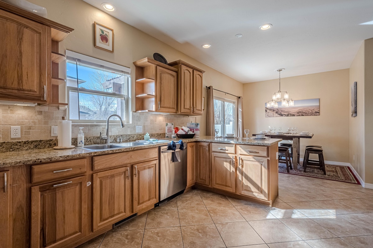 Make some memories at this unique and family-friendly place. Our home welcomes you and your pet/s to enjoy our 2 newly decorated bedrooms with blackout curtains, remodeled luxurious bathroom with 2 showerheads, full kitchen , laundry, pet door, dog run, back porch to sit and relax, and lovely backyard to enjoy. We encourage you to walk downtown, only 6 blocks away. The Colorado National Monument, regional airport, CMU, library, Science Center for kids, and bike trails are very close.