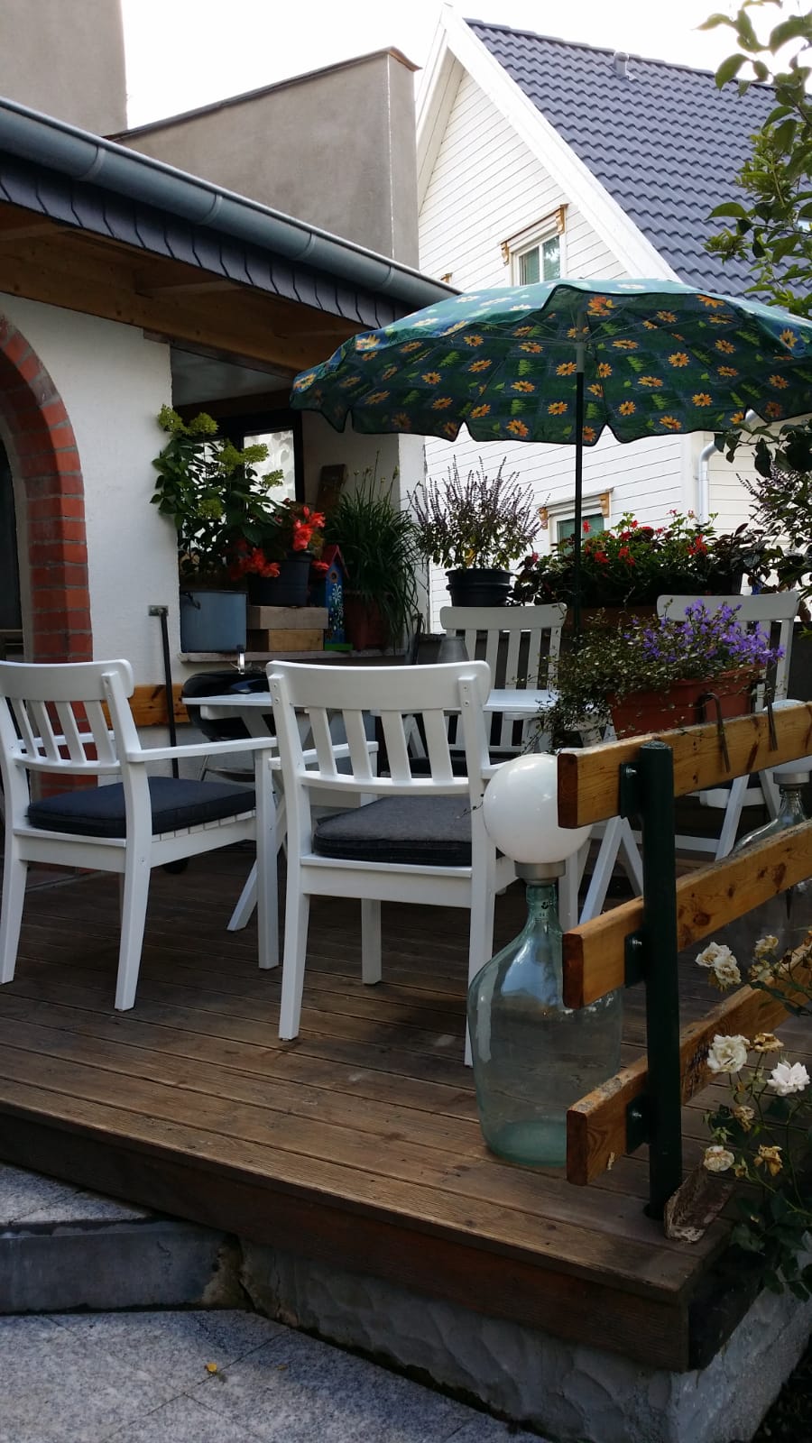 Large enclosed living area (1 room with bathroom) in a detached house on the 2nd floor, with bathroom, kitchen area and large terrace. The apartment has its own entrance and is about 60 m ² in size. The property is accessed via a beautiful garden. The house is located on a quiet side street. Street parking is usually available. In case of emergency, there is a short walk to the neighboring street.