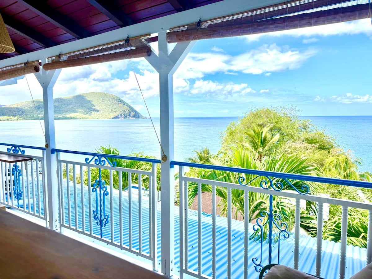 Welcome to "L'Echappée Antillaise" which overlooks the panoramic view of the most beautiful beach on the island, settle into the sofa facing the Caribbean Sea Enjoy this sweetness of life, sunsets to the rhythm of the waves in the evening. 50 m away, discover the coastal path along the sublime coves with turquoise colors Deshaies, a small fishing village reflects the charm and authenticity of yesteryear awaits you Recently renovated, the property is dual-aspect, bright, air-conditioned with Wi-Fi & private parking!