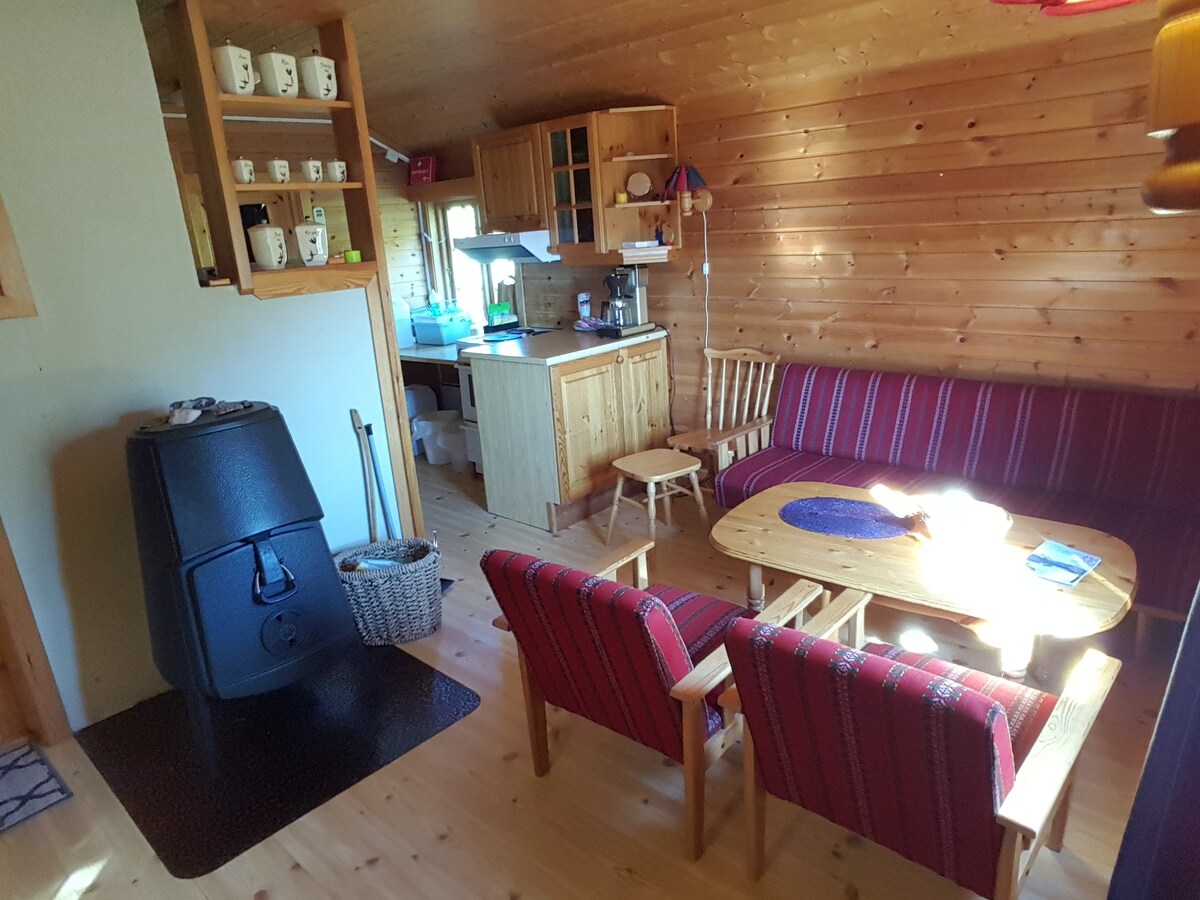 Dette er stedet å leie hvis du ønsker et helt spesielt, romantisk og primitivt opphold med enestående utsikt. Liten hytte med dobbeltseng. Det en utedo knyttet til hytta, men den som leier hytta vil også ha tilgang på delt bad og kjøkken i hovedhuset på Vikinghaug. This is the place to rent if you want a very special romantic and primitive stay with absolutely outstanding views. This is a small cabin with double bed. Shared kitchen, toilet and bathroom in the main house.
