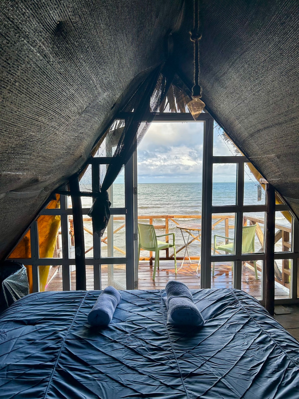 This is a small hotel named Hotelito perdido located on the outskirts of Livingston. We are only accessable by boat This two story bungalow will sleep up to 3 people. The living area has a private 2-person bedroom upstairs, and a sitting room below. The downstairs sofa can be converted into an extra single bed It is a perfect option for families, and or friends staying together. A shared bathroom is located in a separate building nearby Visit hotelitopperdido.com for more information