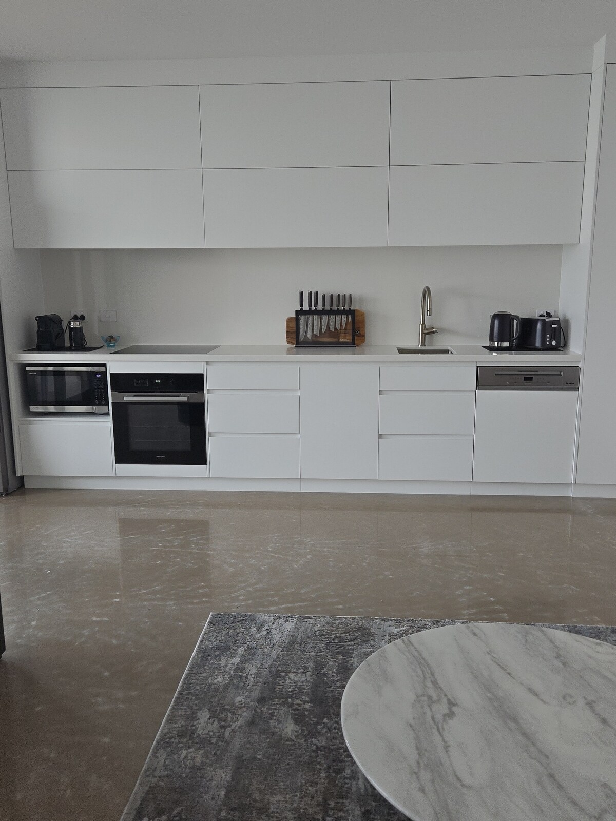 Enjoy a stylish experience at this centrally located home. Boasting 3 large bedrooms, each with their own ensuite and smart TV's. 4 Queen-size beds (bedroom 2 has 2 beds) with luxurious Sheridan linen, towels and beach-towels. Burnished concrete floors, with underfloor heating throughout. The lounge-room has 2 quality white leather lounges with a 75 inch Smart TV. Well appointed indoor and outdoor kitchens. Opulant laundry and a wood-burning firepit table on the front private deck.