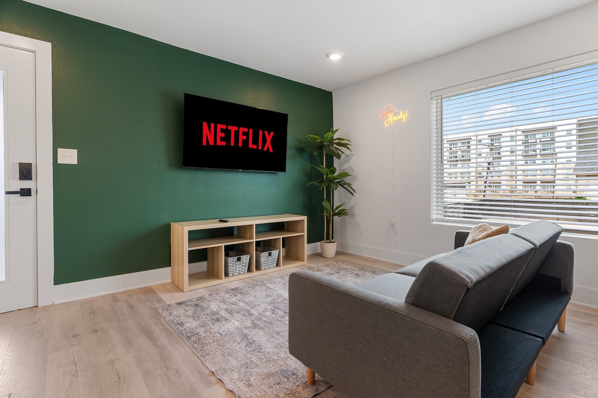 Come stay in our urban treehouse less than two blocks away from the beating heart of Bishop Arts! You'll love these: - King Bed for ultimate comfort - Smart TVs: 60" in the living room and 55" in the bedroom for your entertainment - Gated property with on-site parking for peace of mind - Super-fast WiFi to stay connected or stream your favorite shows - Luxurious bedding for a restful night’s sleep - Stylish décor featuring contemporary design and unique artwork throughout the apartment