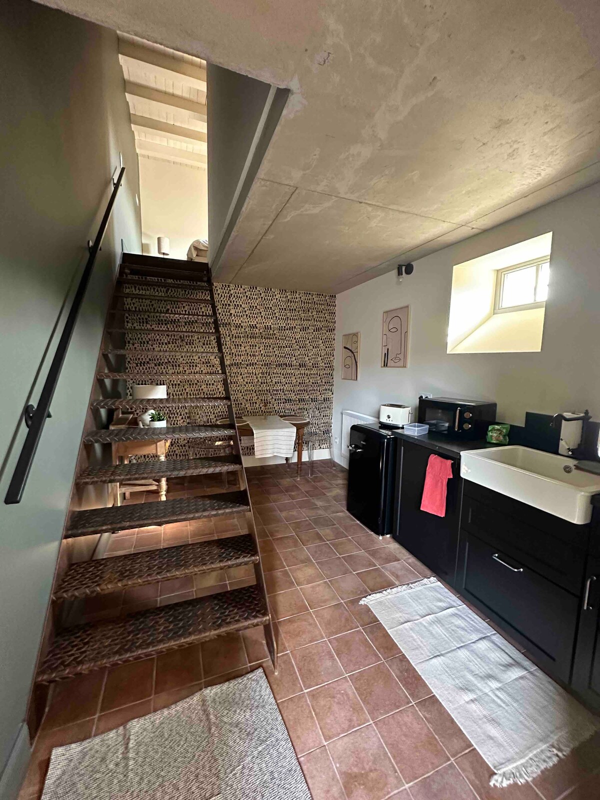 🗿 In the heart of Metz's historic centre, an architect has conceived of the continuation of the ramparts as a marriage between the strength of Lorraine stone and tropical softness. 🏛️ Under a four-metre-high vault that shakes up the codes, a giant spa designed by an Italian designer blends into a living room bathed in light, offering a view of the cathedral and giving the place an almost theatrical aura. 🍋🟩 A well-kept wellness area and a king-size bed complete this apartment steeped in history.