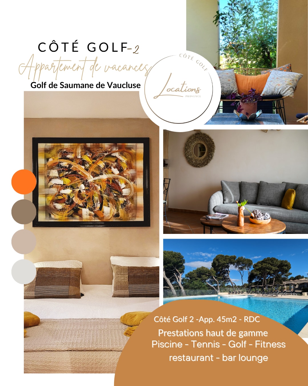 Superb 40 m2 apartment with a large 16 m2 terrace overlooking a pine forest, so very quiet, located in a residence in the heart of the Golf de Saumane with swimming pool, tennis courts, fitness room, bar and restaurant! Ideally located 5 minutes from Isle sur la Sorgue, full of tourist attractions nearby, Le Luberon, Les Alpilles, Saint-Rémy-de-Provence, Mont Ventoux and of course Avignon half an hour away! The apartment is on the 1st floor (there is only one floor)