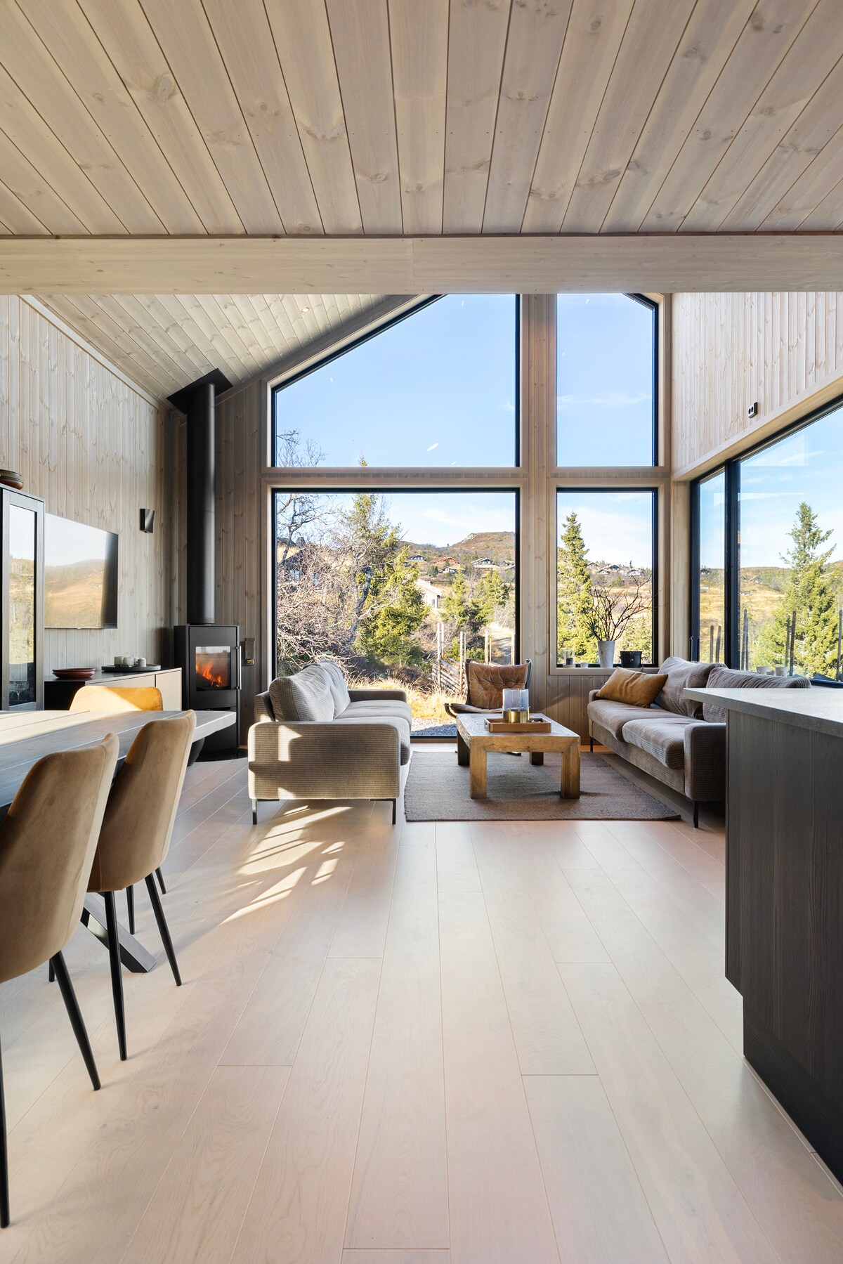 Very great newly listed loft cabin in 2022. located at about 850 meters altitude. 4 bedrooms, bathrooms and SAUNA. (Use of hot tub must be agreed upon in advance) Large kitchen with fireplace and space for large family with exit to terrace and fire pit. In the spacious living room there is a large TV 85" and another fireplace and exit to a large terrace with a hot tub. The cabin is equipped with fiber, washing machine/dryer. Heat pump installed in 2024. Fantastic cabin with very good starting point for hiking in winter and summer.