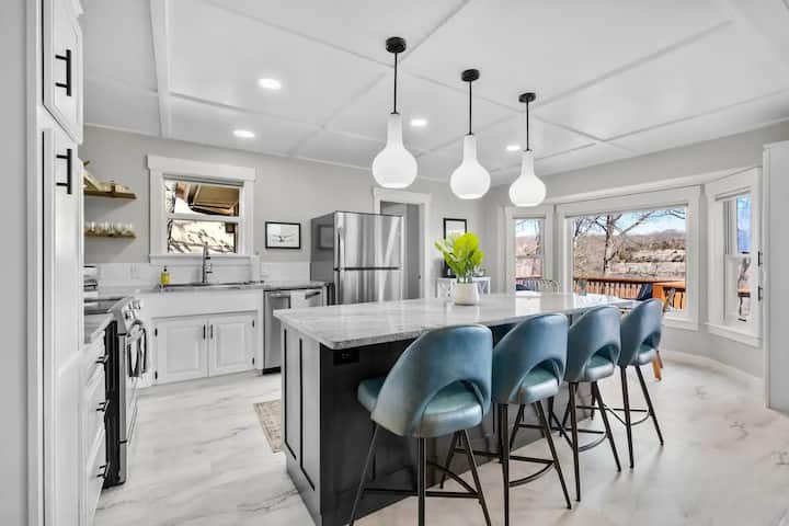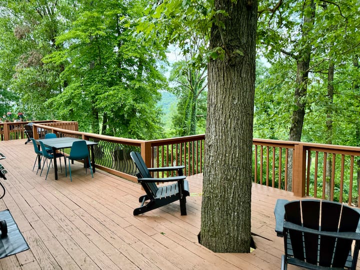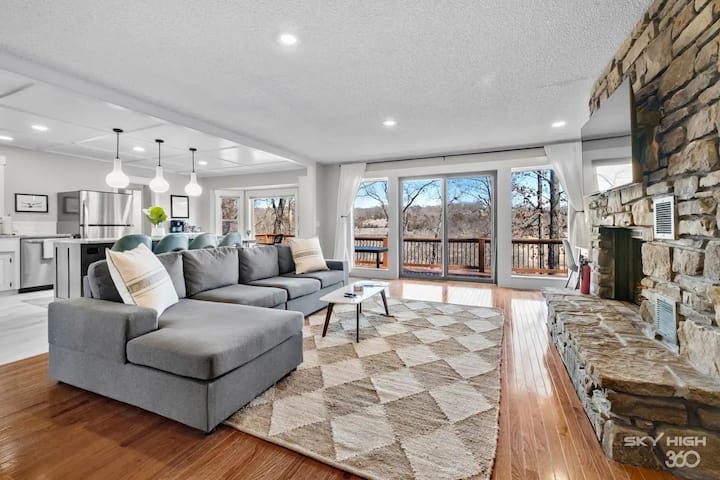TreeTop Trailhead House is a spacious, 2,800 sq ft home, nestled at the end of a quiet cul de sac with a private pathway that directly connects to the Tunnel Vision trail. Our home is one of the most conveniently located rentals in all of Bella Vista. An outdoor swimming pool, tennis courts, basketball courts, mini golf, a gym, golf course, restaurants, shops, and a grocery store are all a quick two minute or less drive from the property. Blowing Springs Park and the Beer Garden are six minutes away, with downtown Bentonville being under a 15 minute drive.