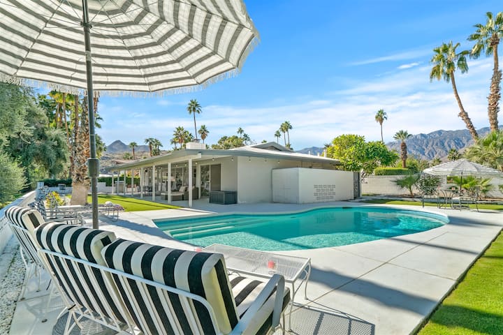 Step into a time capsule of mid-century charm and luxury at our 3 bedroom, 2 bathroom pool home in vibrant Palm Springs, California.