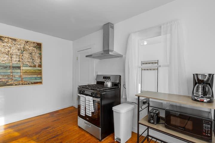 Only a 7 minute drive from medical mile, this 900 sq ft 1 bedroom unit is ideal for traveling healthcare workers (or other traveling professionals). Built in 1895, this newly renovated unit in Grand Rapids exudes old-timey charm.
