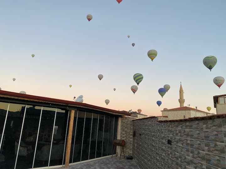 My name is Veysi I am a professional licenced Tour Guide in English, Chinese, Spanish Italian and Portuguese.We have 9 double,5family1 jakuzi room.FREE wifi,water,tea,coffe apple tea.Location is very good, fantastic view of hot air ballon and landscape of cappadocia on our terrace. Breakfast 8 till 10am. if you come earlier you can leave your laguages and have FREE breakfast. airport transfers,hot air ballon,daily tours,ATVtours and more. see you