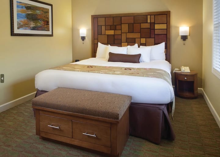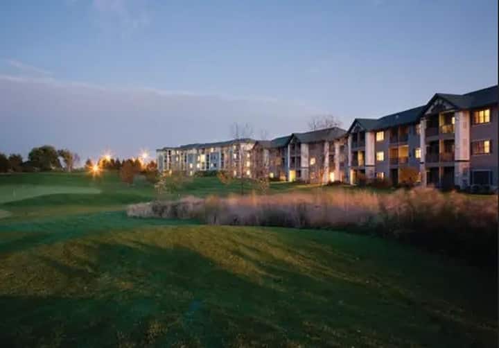 Looking for a cozy year round destination? Lake Geneva has you covered. Tucked away in the tranquil countryside of Lake Geneva, you are just a short drive from Chicago and Milwaukee. Our inviting one bedroom villa has all the comforts of home as well as unending ways to spend your time. At the resort you will have access to two championship golf courses, indoor/outdoor pools, a water park, horseback riding, 7 on-site restaurants, and a spa. Great location (walking distance) for Gary Con!