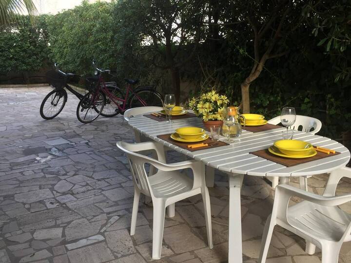 Large villa in Lido Specchiolla, a short walk from the sea. Suitable for groups and families. Two bedrooms, kitchen, dining room, bathroom, outdoor shower, veranda. Two bicycles are available for guests.