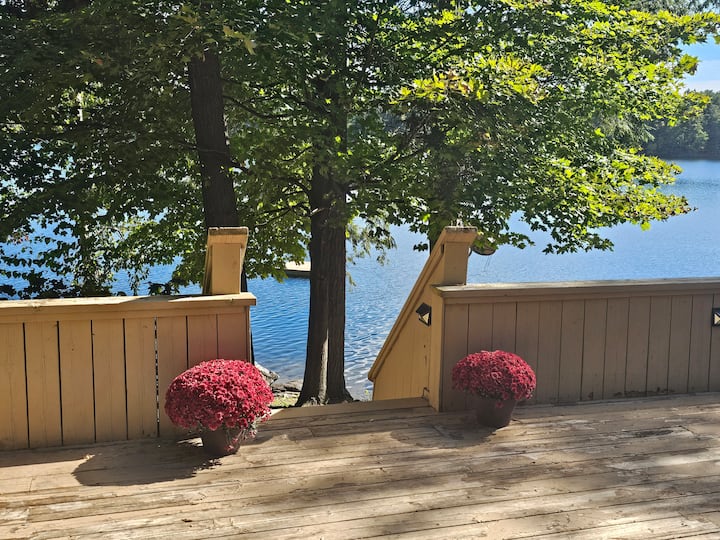 Relax & play with the whole family at this peaceful place to stay. We are a family cottage with lots of Character! This is a gorgeous private lake. Water is wonderfully clean. Play in the sand or Dive right off the end of the dock and swim to the floating raft for some all day sun! Enjoy a fire in the evenings right at the waters edge. Screen room facing the water to avoid bugs. Visiting in the winter? enjoy the stunning walk along our quiet road, the snow is beautiful and cars are minimal.