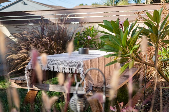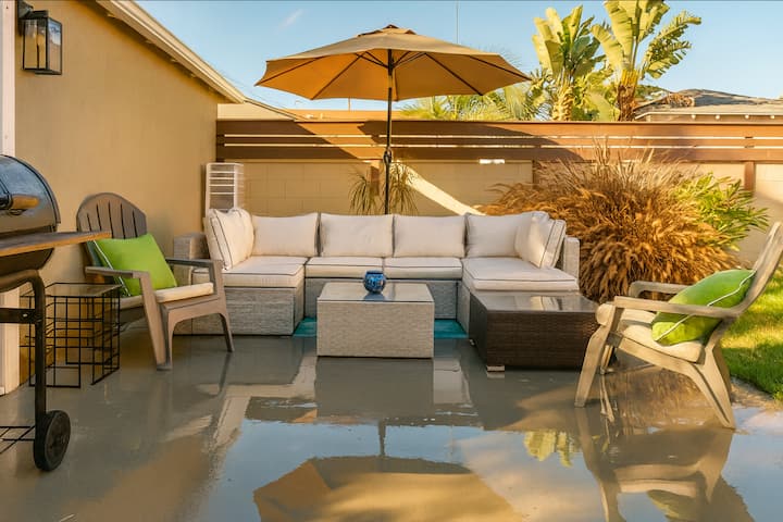 Love to cook? Our fully equipped kitchen, with everything from a blender to BBQ tools, makes whipping up meals a breeze. Slide open the patio door to a sunlit outdoor space, perfect for grilling under the California sky.