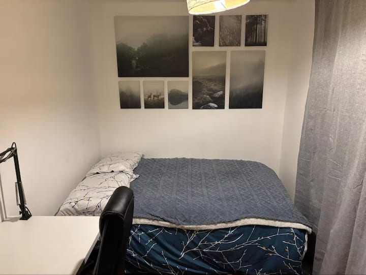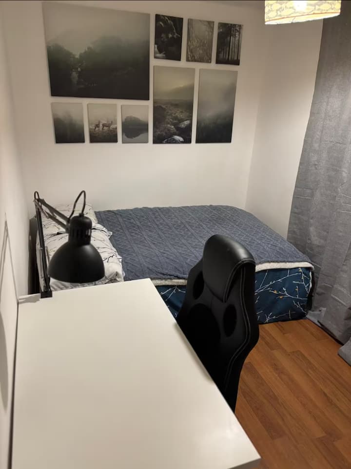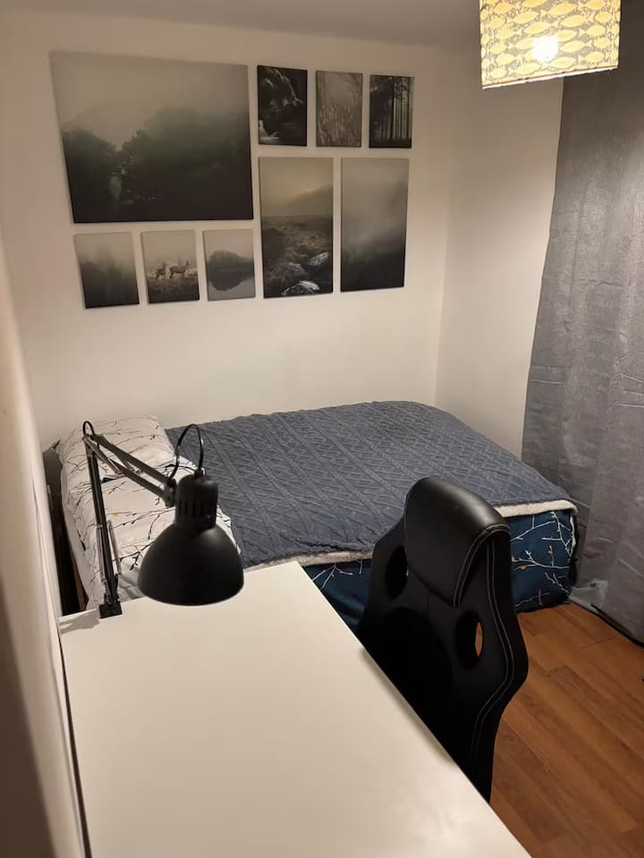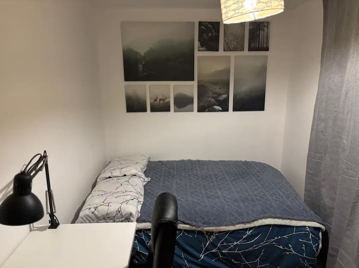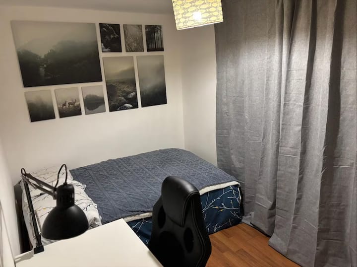 Room located in a 4-bedroom flat wich exudes a classic charm, boasting well-maintained vintage and modern features with carefully selected details to create a homely atmosphere. Furnished with a comfortable double bed, hanger, desk, and a cozy office chair for your extended hours, the space is perfect for those seeking a delightful and budget-friendly stay near to city center. Additionally, the room is well soundproof insulated, ensuring a peaceful and quiet environment for your comfort during your delightful stay.