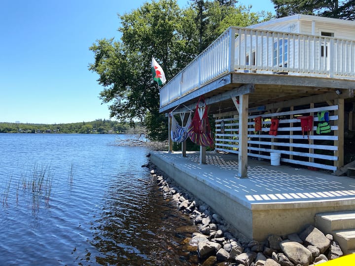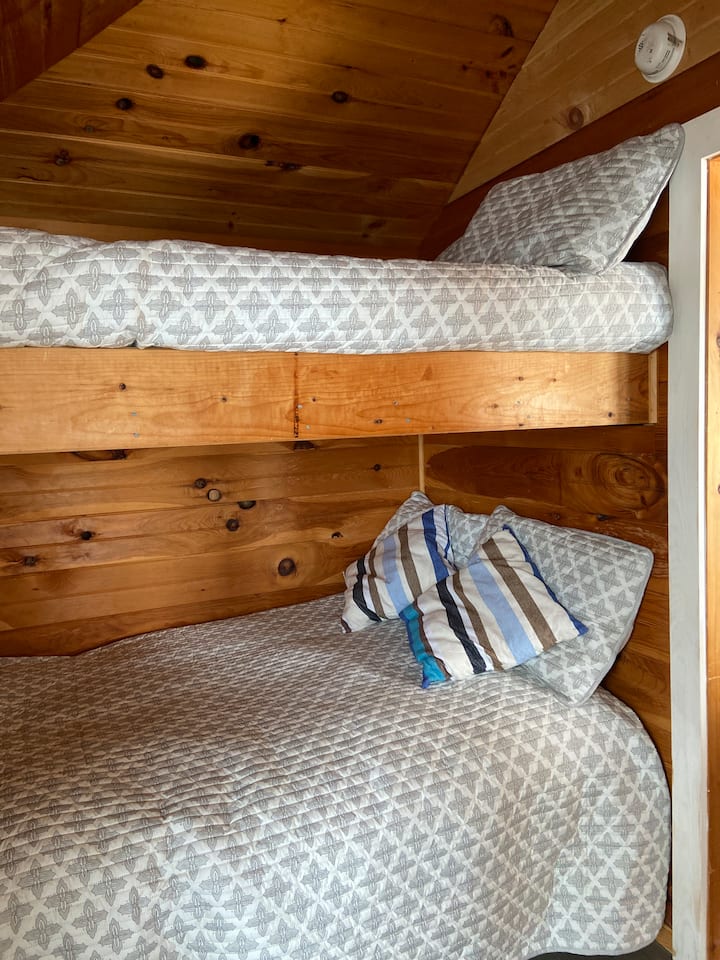 Make some amazing memories at this unique and friendly lakefront setting. Our charming cottage features a comfortable bedroom with a unique bunk bed setup, offering two double beds for a peaceful night's sleep. ( Bedding is laid out on bunks; guests make their own beds) The rustic yet modern interior provides a warm ambiance, perfect for a family, a romantic getaway, a honeymoon or for unwinding after a day of exploring the area. Make some amazing memories at this unique and friendly setting.